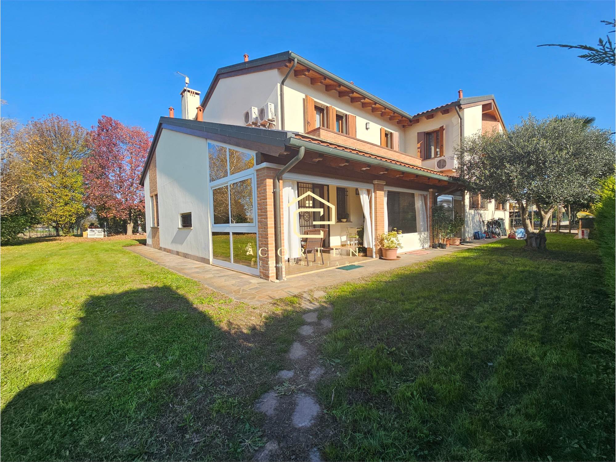 Splendida villa singola con ampio giardino di 1400 mq su due livelli con annessa dependance al grezzo.